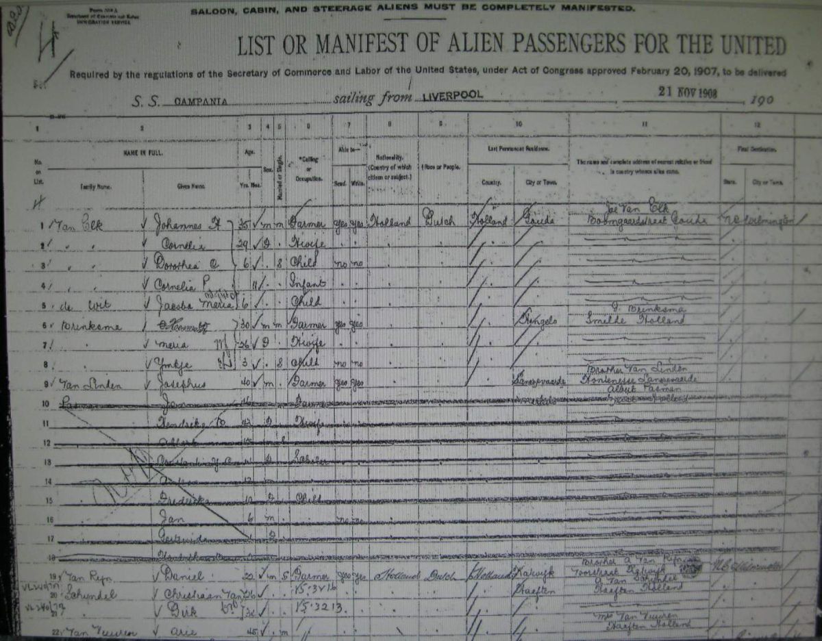 Ellis Island - list or manifest 1908 - S.S. Campania, 21-11-1908 - regel 19