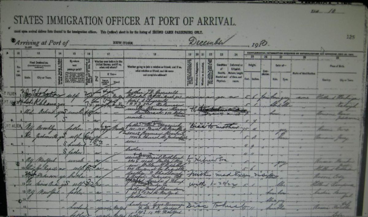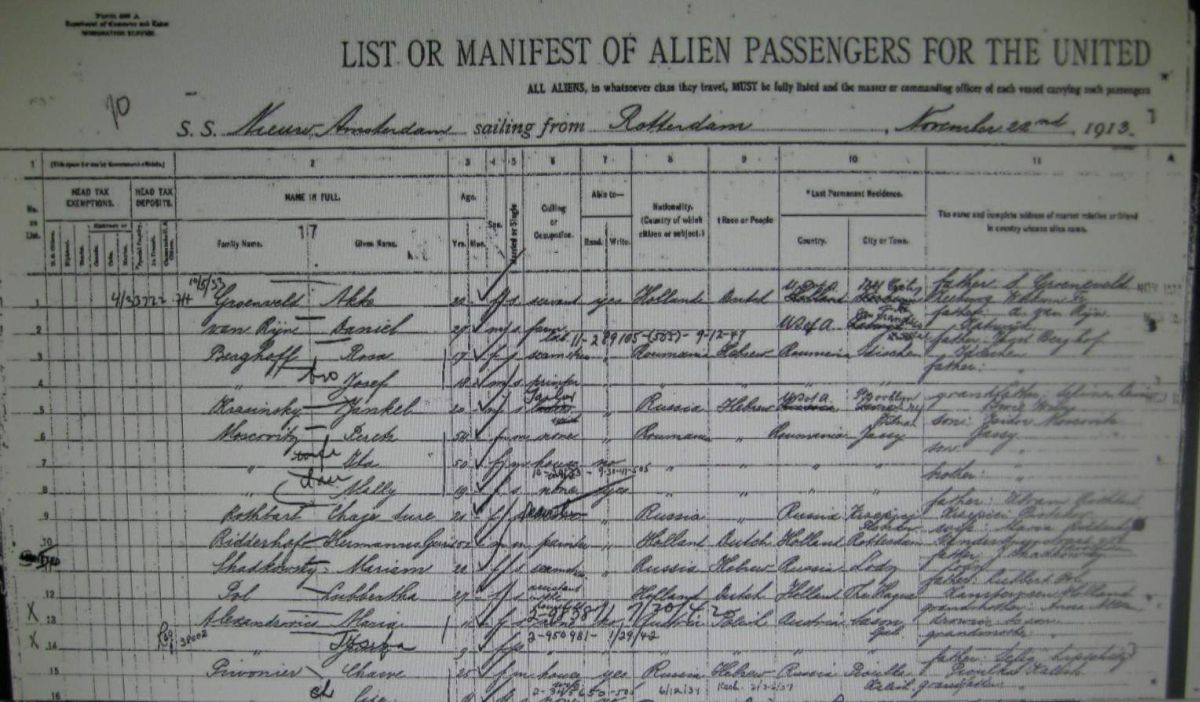 vertrokken, waarna hij op02-12-1913 op Ellis Island, USA aankwam. Zijn passagenummer